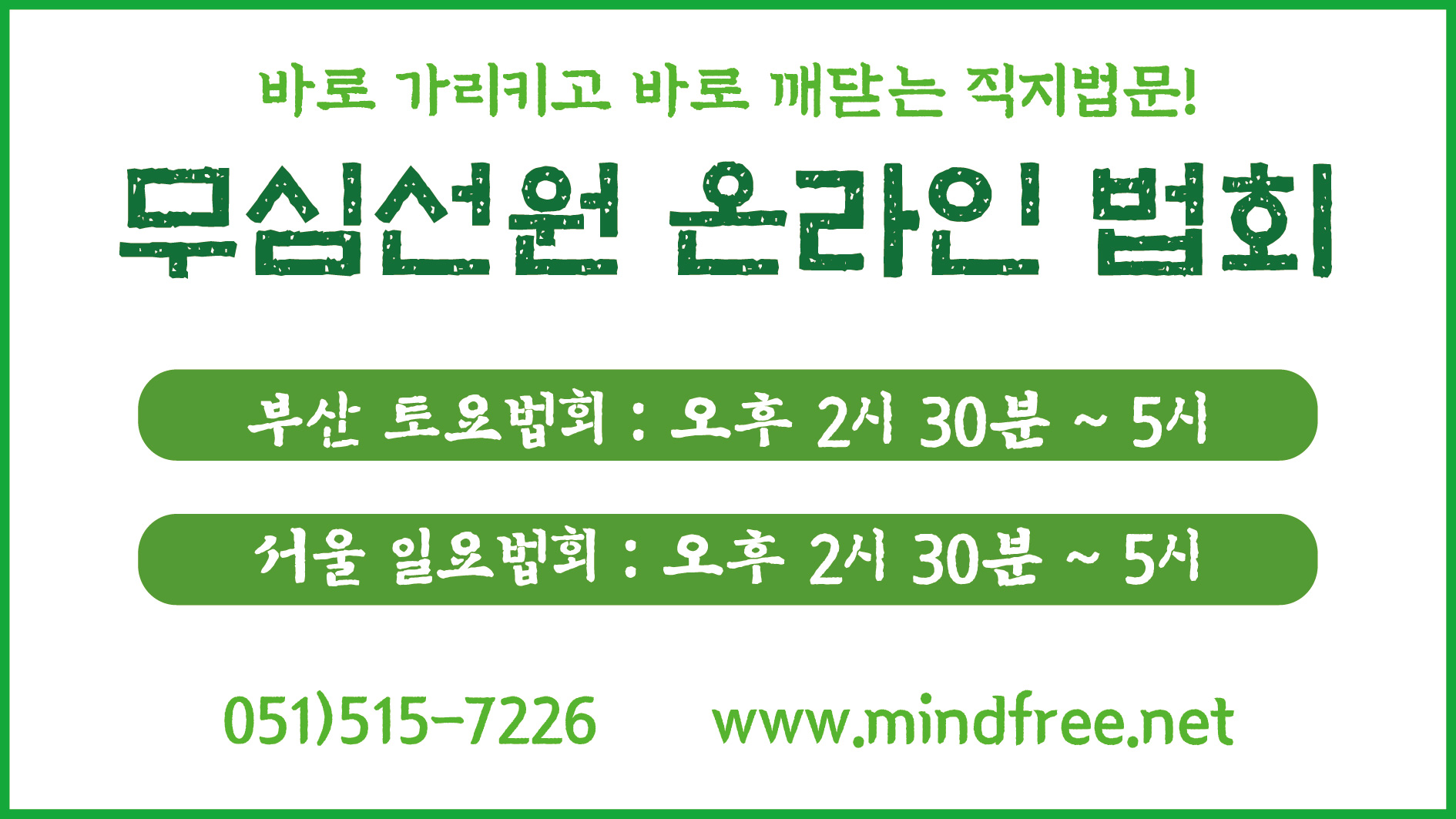 - 유튜브를 통해서도 보실 수 있습니다.(법회 시작 10분 전 유튜브에서 무심선원 검색)