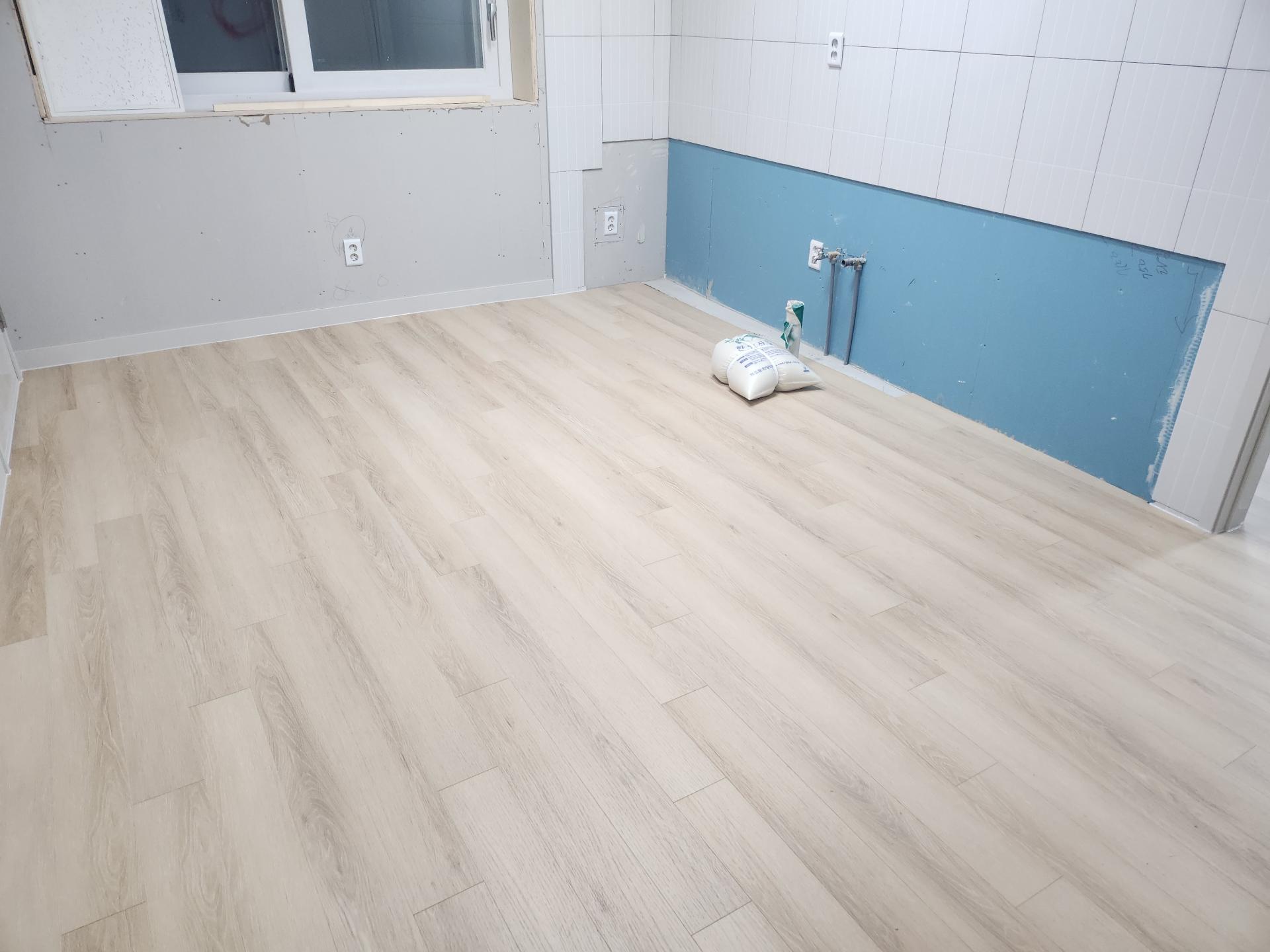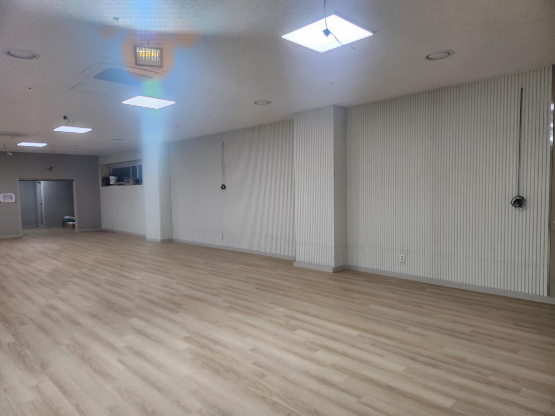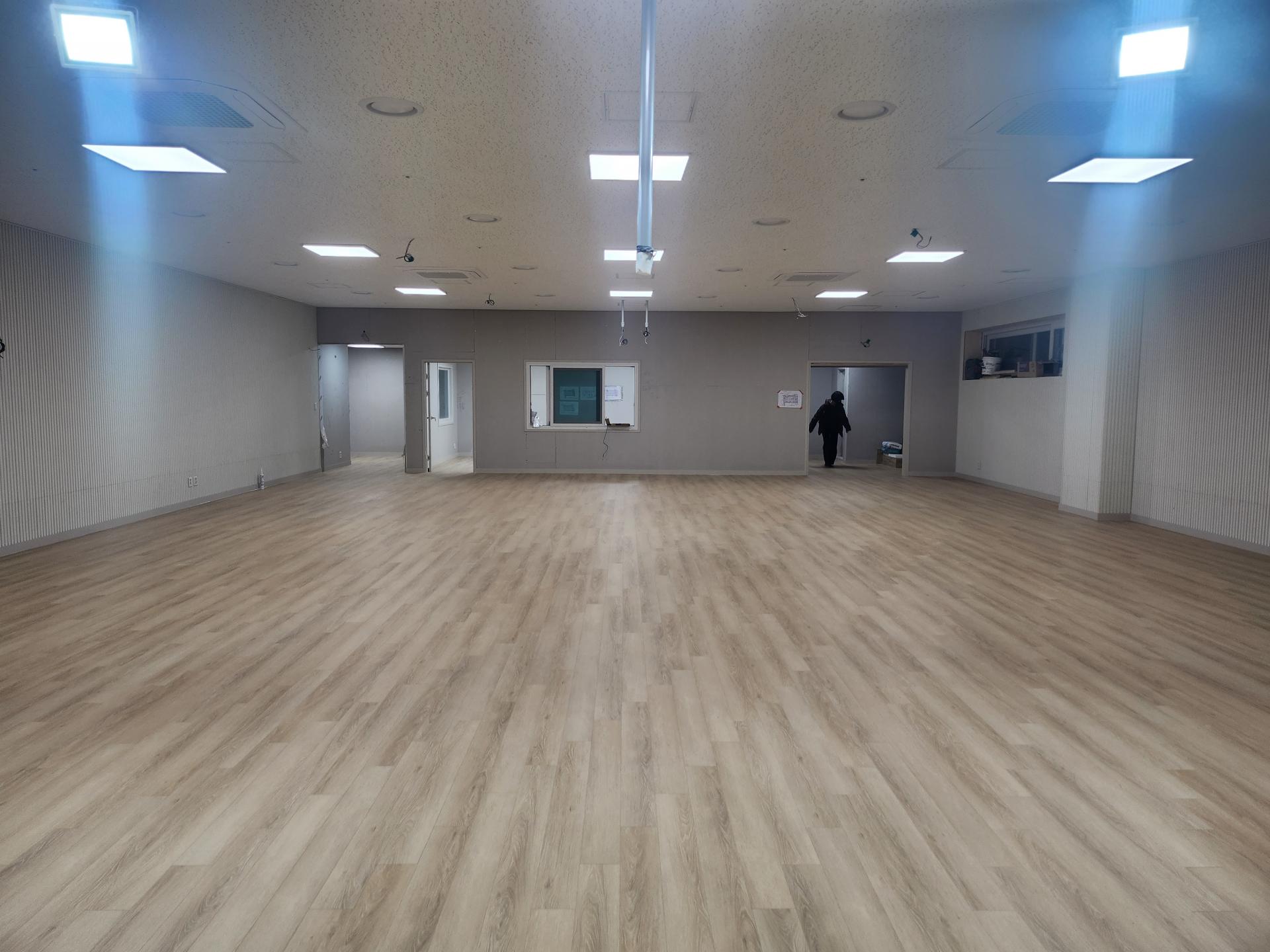 선원의 바닥이 강마루 시공으로 견고하고 깔끔하게 마무리되었습니다.